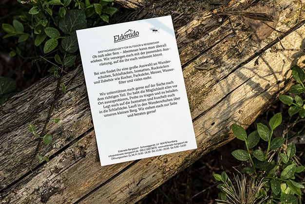 Since its opening in spring 2019, the mountain sports store has become an authority for climbing and outdoor supplies in Nuremberg. We accompanied the team around the owner Tobias Plail from the beginning and developed an independent visual language that puts "being outdoors" and the passion for alpine sports in the center of the identity. All printed matter and advertising materials are based on Tobias' nature and climbing photographs. For the design we oriented ourselves on alpine guides, hiking maps and climbing topos of the 1970s and 80s. Accompanying the opening, we designed a campaign that was spread via posters and postcards.