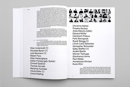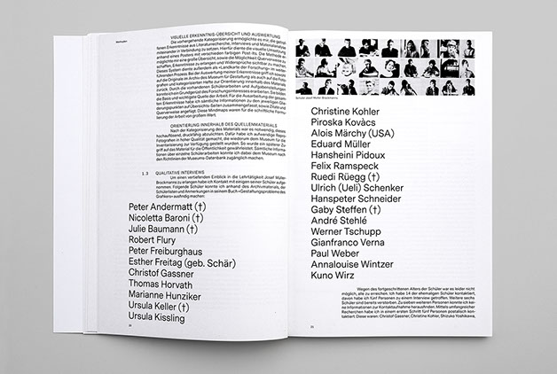 Josef Müller-Brockmann is considered one of the best known representatives of Swiss Graphic Design. This research analyzes Müller-Brockmann as a teacher at the "School of Applied Arts Zurich" from 1957 to 1960, correlating his teaching with his personality, his former students, and his time. As part of the thesis, student work and interviews with former students provide insight into this era in Müller-Brockmann's life. Design history research and contemporary design come together in the two resulting publications. The two books were presented at the Zurich University of the Arts in 2017.
