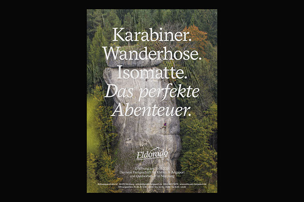 Since its opening in spring 2019, the mountain sports store has become an authority for climbing and outdoor supplies in Nuremberg. We accompanied the team around the owner Tobias Plail from the beginning and developed an independent visual language that puts "being outdoors" and the passion for alpine sports in the center of the identity. All printed matter and advertising materials are based on Tobias' nature and climbing photographs. For the design we oriented ourselves on alpine guides, hiking maps and climbing topos of the 1970s and 80s. Accompanying the opening, we designed a campaign that was spread via posters and postcards.