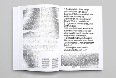 Josef Müller-Brockmann is considered one of the best known representatives of Swiss Graphic Design. This research analyzes Müller-Brockmann as a teacher at the "School of Applied Arts Zurich" from 1957 to 1960, correlating his teaching with his personality, his former students, and his time. As part of the thesis, student work and interviews with former students provide insight into this era in Müller-Brockmann's life. Design history research and contemporary design come together in the two resulting publications. The two books were presented at the Zurich University of the Arts in 2017.